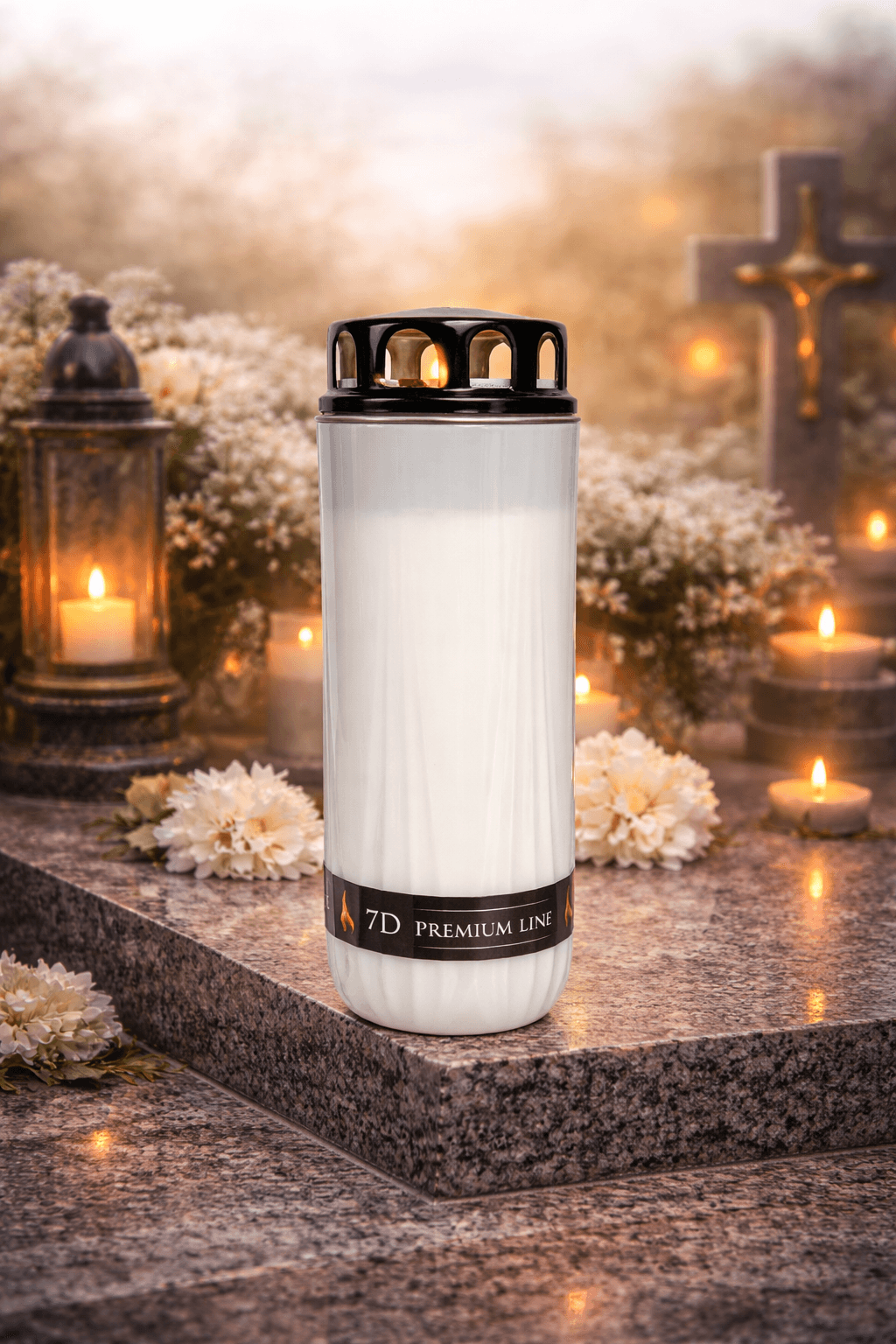 Candela Premium din plastic SVS negru 7D este o optiune ideala pentru iluminare prelungita in spatii de cult, ceremonii sau locuinte. Cu un timp de ardere de 7 zile, aceasta este fabricata din 100% parafina, avand un design negru elegant si discret.